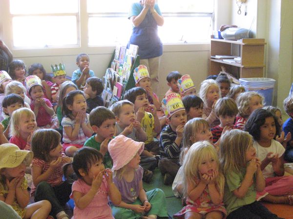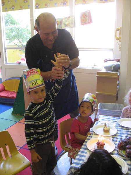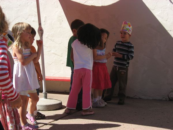 Yes, the long wonderful journey through preschool has come to an end for Eli. View pics of his last day, which coincidentally coincided with the birthday celebration for kids with August birthdays (Eli’s was the 11th). The blonde babe in the white dress is his true love Haley. check it out: